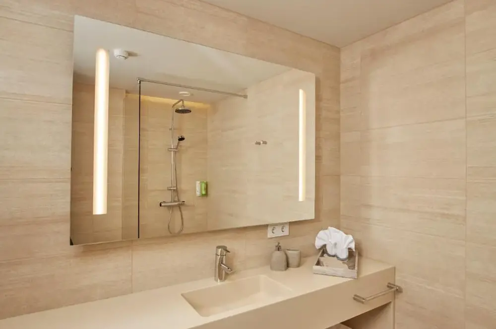 La habitación estándar (asignada aunque habíamos reservado en Booking para dos adultos y un niño), realmente pequeña incluso para abrir dos maletas a la vez. Cabina de ducha con notables fugas de agua. No reponer los productos del baño (No es buena sensación encontrarse en la ducha y darse cuenta de que los dispensadores de gel de ducha no han sido rellenados).